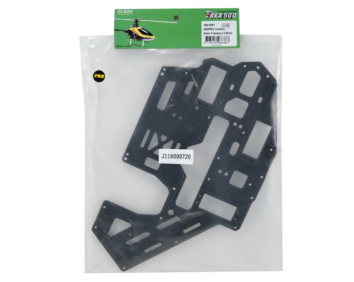 This is a replacement Align 1.6mm Carbon Main Frame (L), and is intended for use with the Align T-Rex 500E Pro and 500EFL Pro helicopters.
