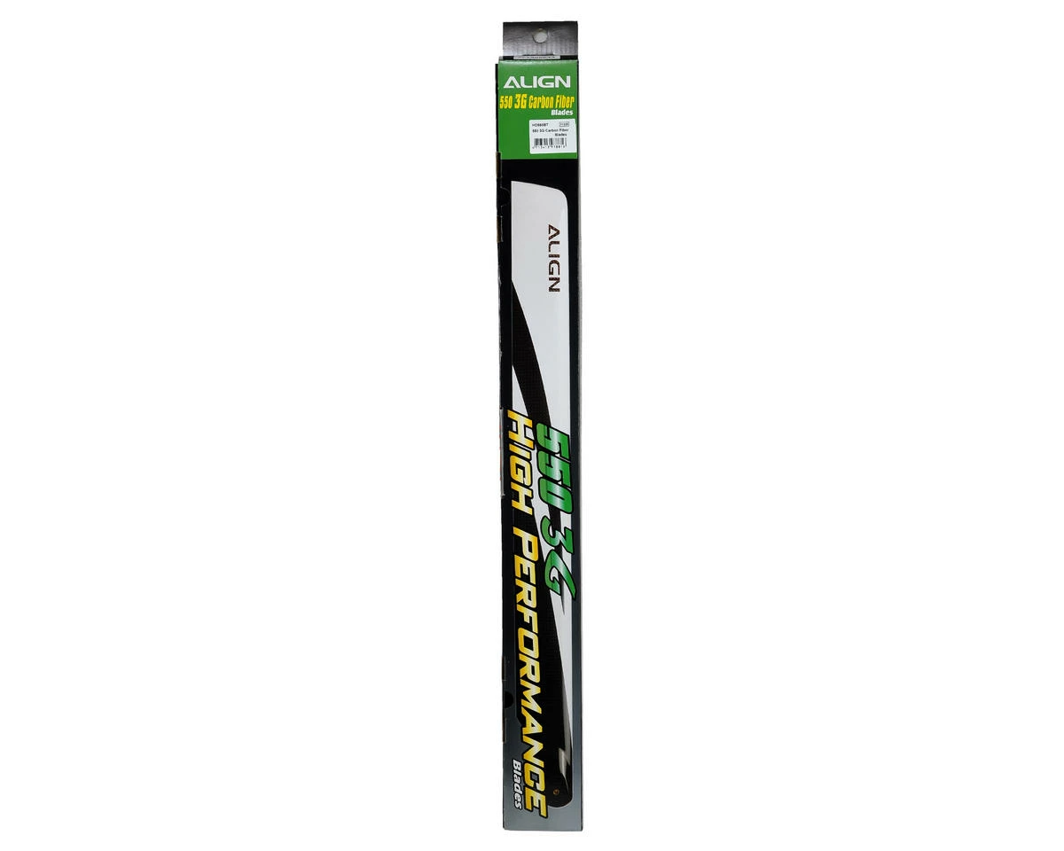 This is a set of Align 550 3G Carbon Fiber Blades. Align’s 550 3G main blades are designed specifically for extreme 3D flying, featuring both high agility and excellent stability characteristics. The blades have a redesigned airfoil and painted graphics. Additionally, the blades rigidity has been increased for better anti-torsion characteristics during flight. The airfoil design effectively minimizes turbulence at the blade tips, reducing blade noise and power loss.