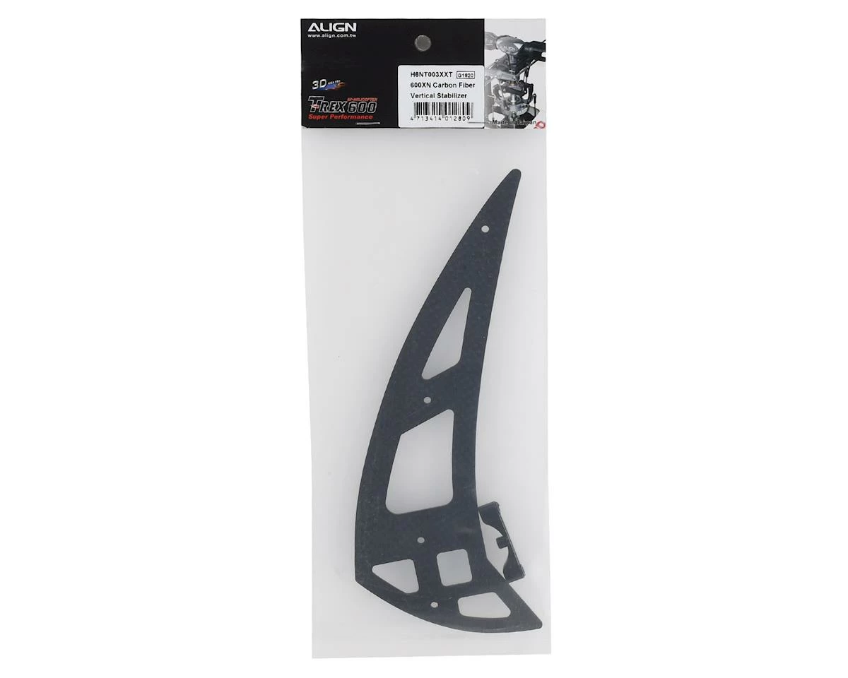 This is a replacement Align Carbon Fiber Vertical Stabilizer, suited for use with the Align T-Rex 600XN helicopter.