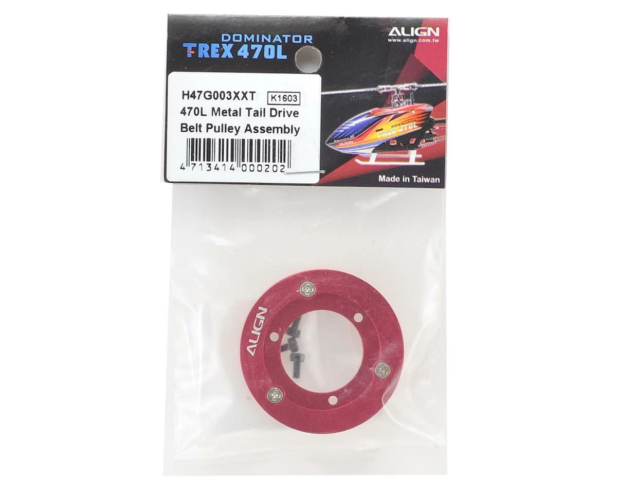 An optional upgraded Aluminum Metal Tail Drive Belt Pulley from Align, suited for use with the T-Rex 470L Dominator helicopter.