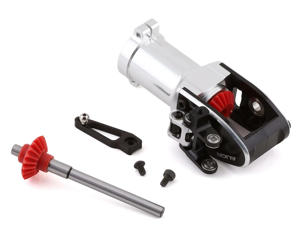 This is a replacement Align T-Rex 650X Tail Case Unit. This includes a set of rear torque tube gears, tail shaft, and tail pitch arm assembly.