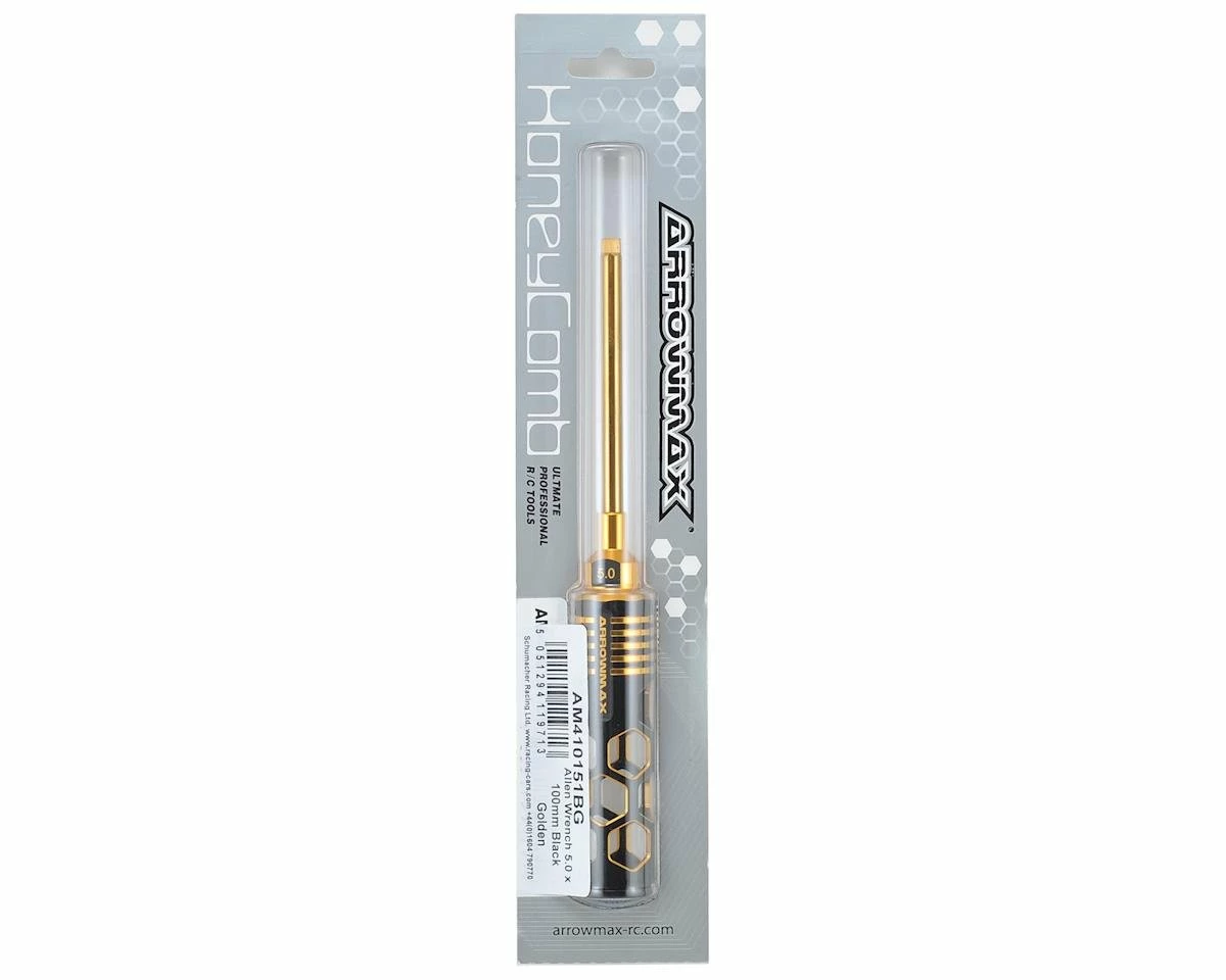 This is the Arrowmax Limited Edition Metric 5mm Allen Wrench. This tool features an eye-catching hollow honeycomb handle design with a rich black and gold color finish. Spring steel titanium nitride tips and a bottom cover provide a more comfortable, controllable and lighter feeling.