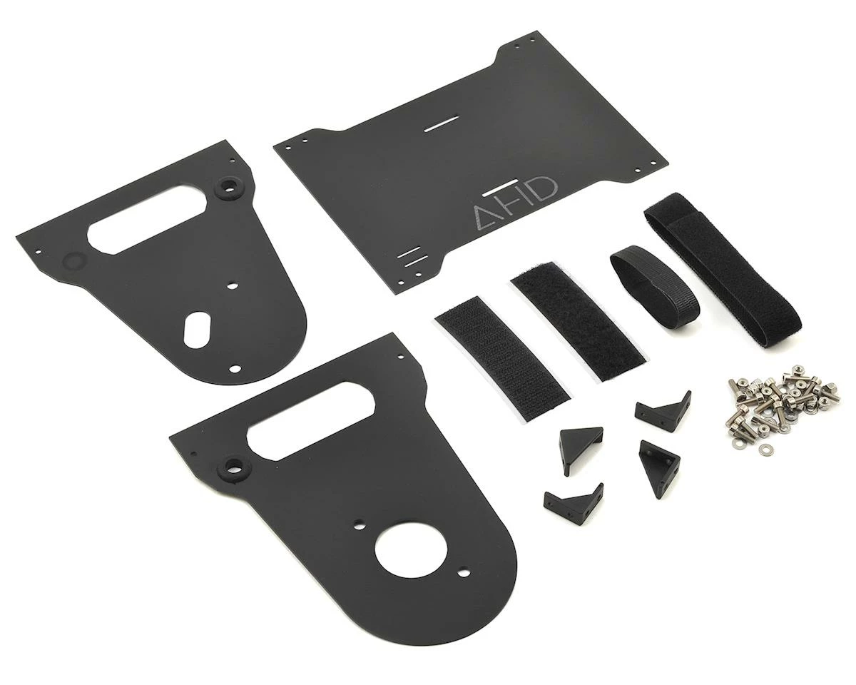 Each mount incorporates a starter wand mounting location, as well as slots for a velcro strap to secure the battery to the G-10 platform.