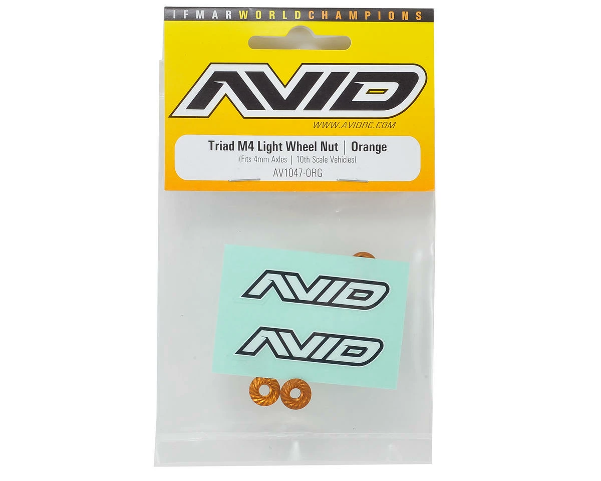 - Each package includes 4 orange wheel nuts and 1 AVID mini decal sheet.