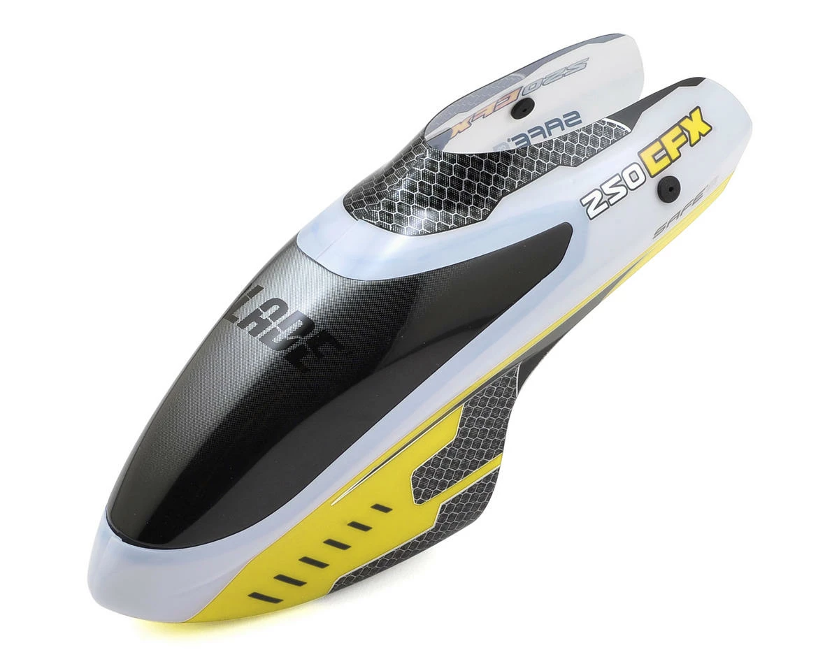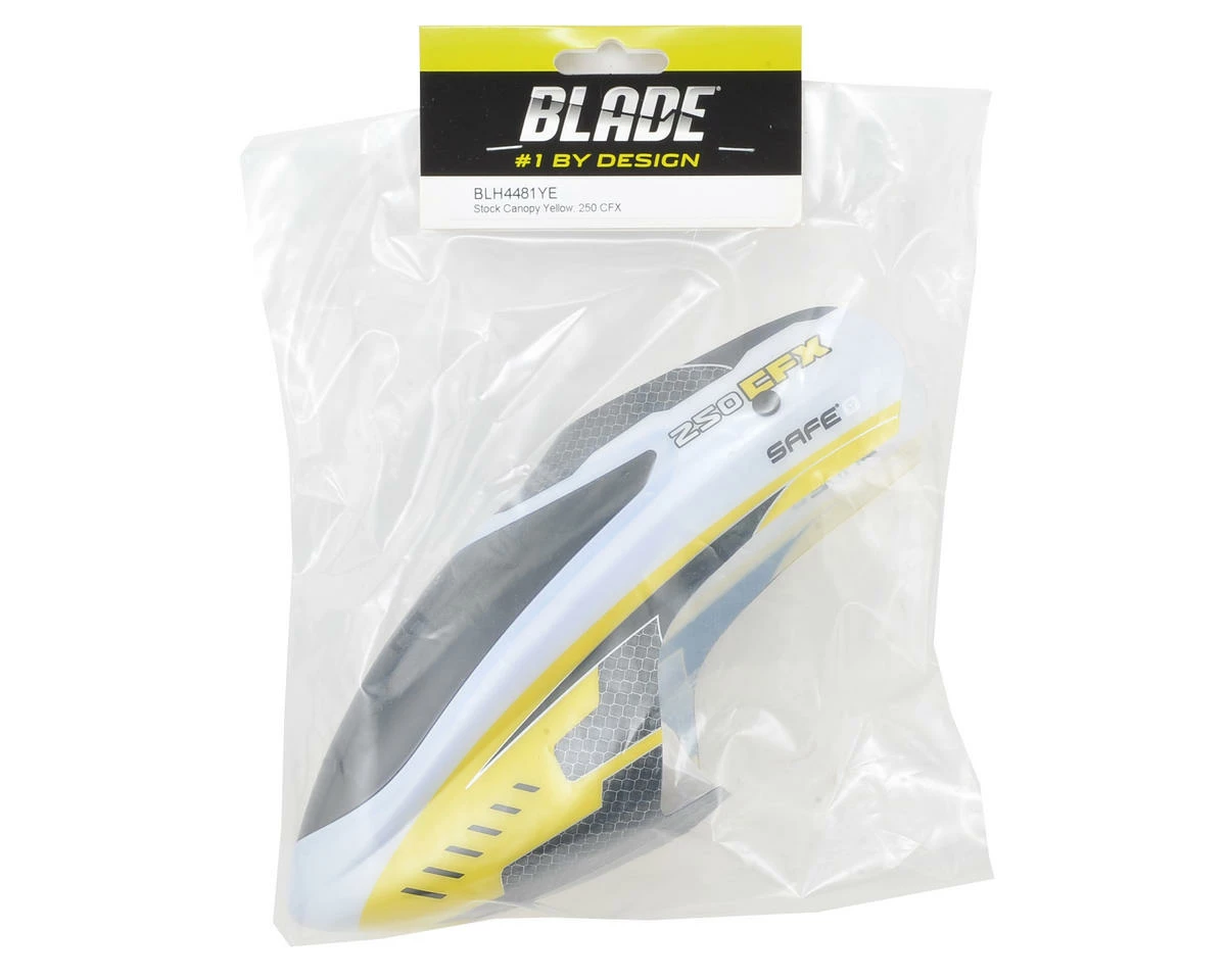 This is an optional Blade Yellow Canopy for the 250 CFX helicopter. This canopy is painted with pre-applied decals and features installed rubber mounting grommets.