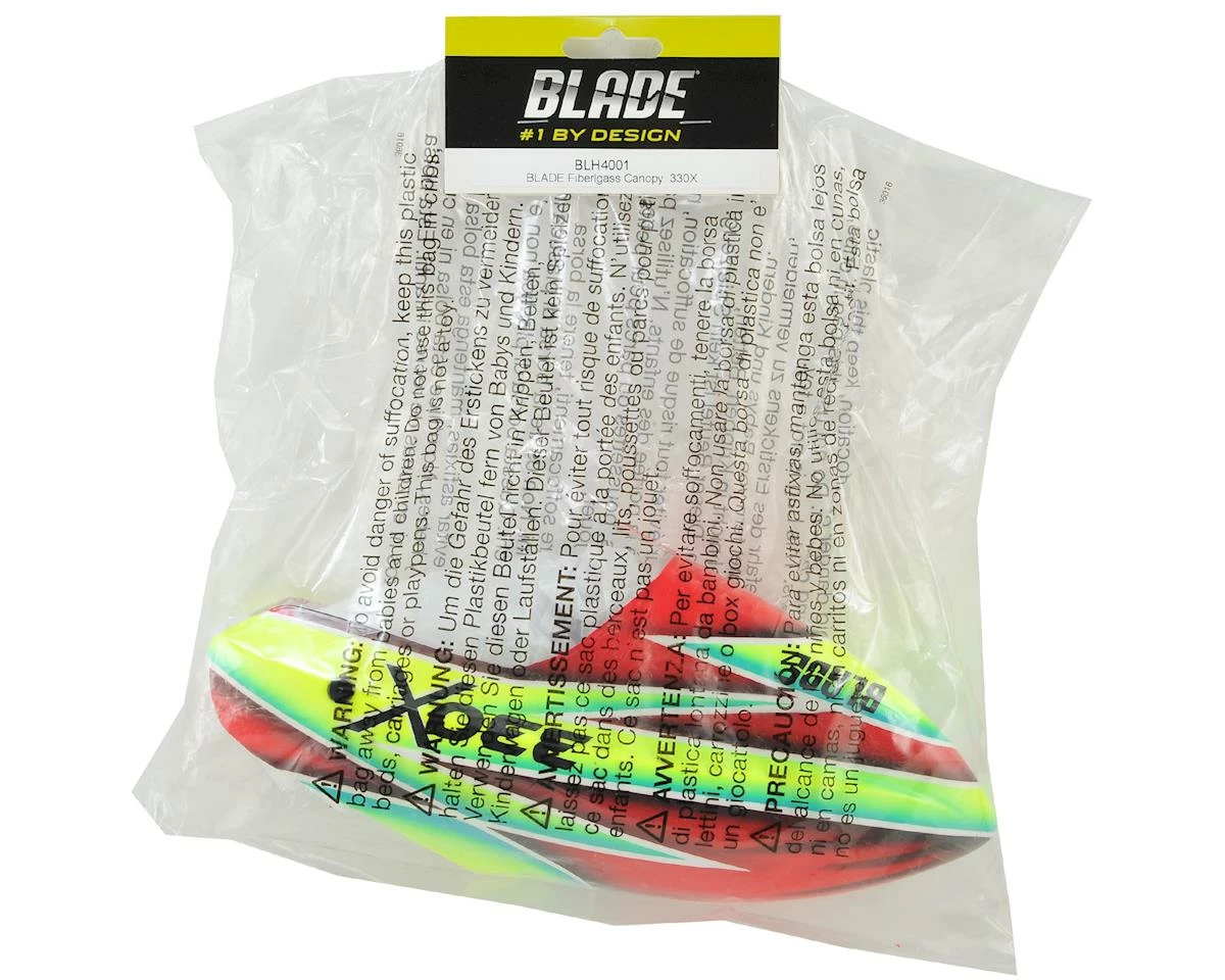 This is an optional Blade Painted Fiberglass Canopy in Green and Red colors, suited for use with the Blade 330X helicopter.