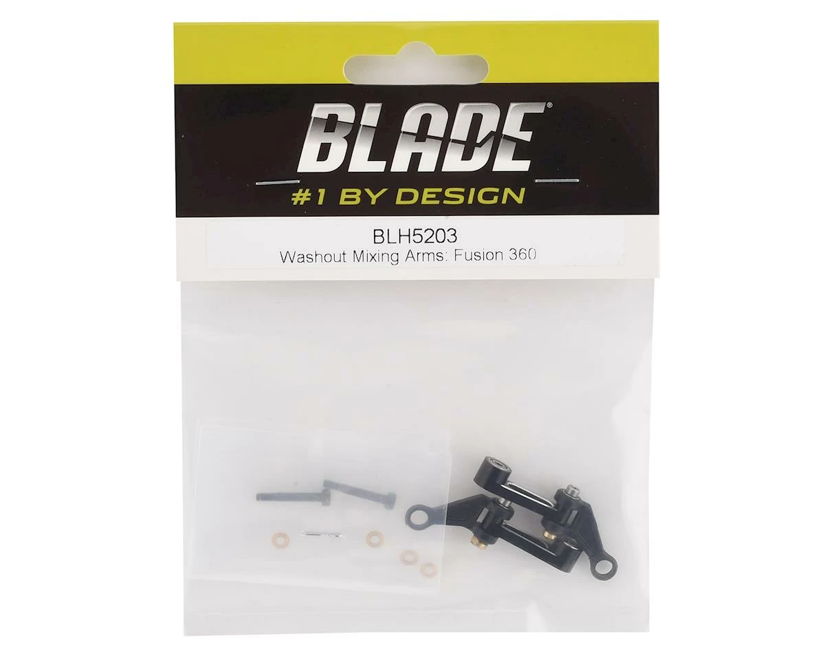 This is a replacement set of Blade Washout Mixing Arms for use with the Fusion 360. This pack contains two factory assembled mixing arms and hardware.
