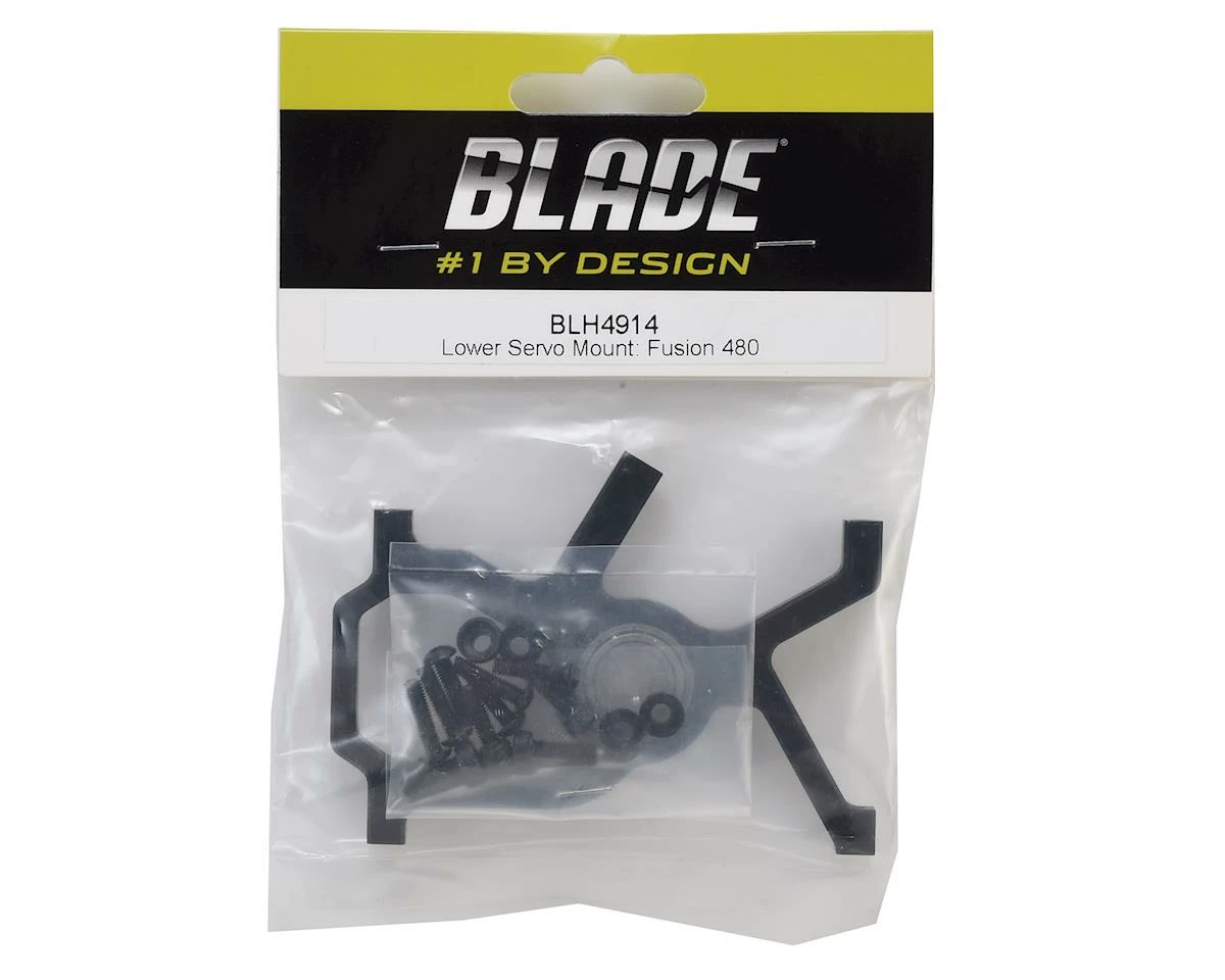 Blade Fusion 480 Lower Servo Mount. This is the replacement lower servo mount. Package includes one servo mount with factory installed bearing, as well as replacement hardware.