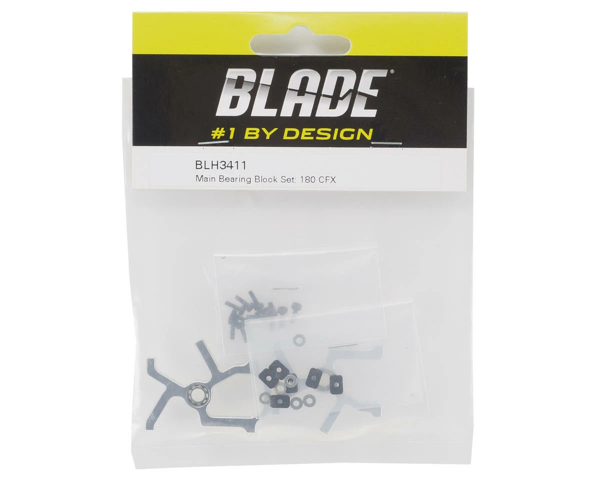 This is a replacement Blade 180 CFX Main Bearing Block Set. Package includes two aluminum bearing blocks with pre-installed bearings, as well as replacement installation hardware.
