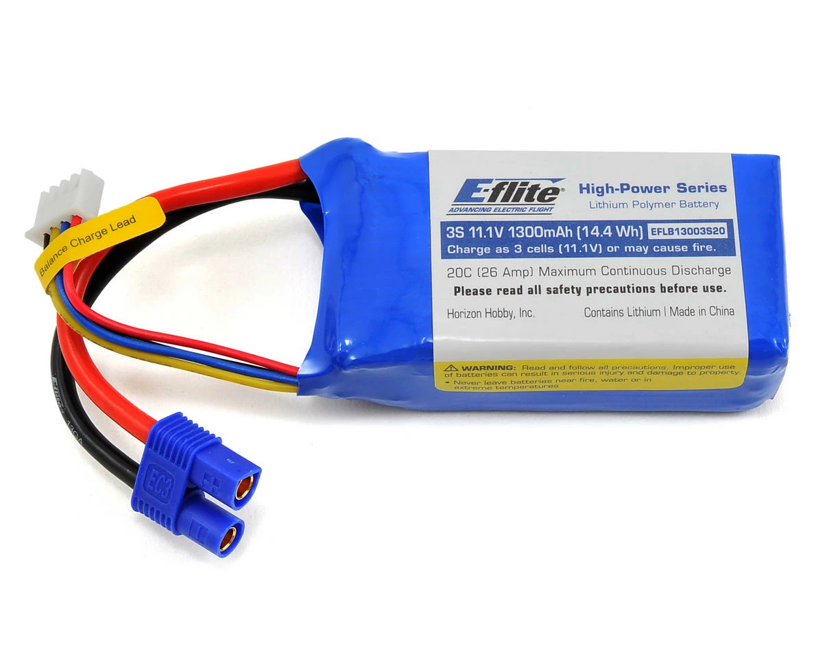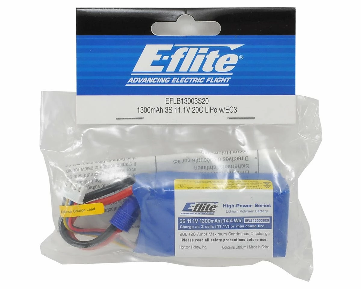 This is a replacement E-flite 3S, 1300mAh, 20C Li-Poly Battery Pack with EC3 connector. This battery is compatible with the ParkZone Sport Cub, HobbyZone Sportsman S+, and Super Cub S airplanes.