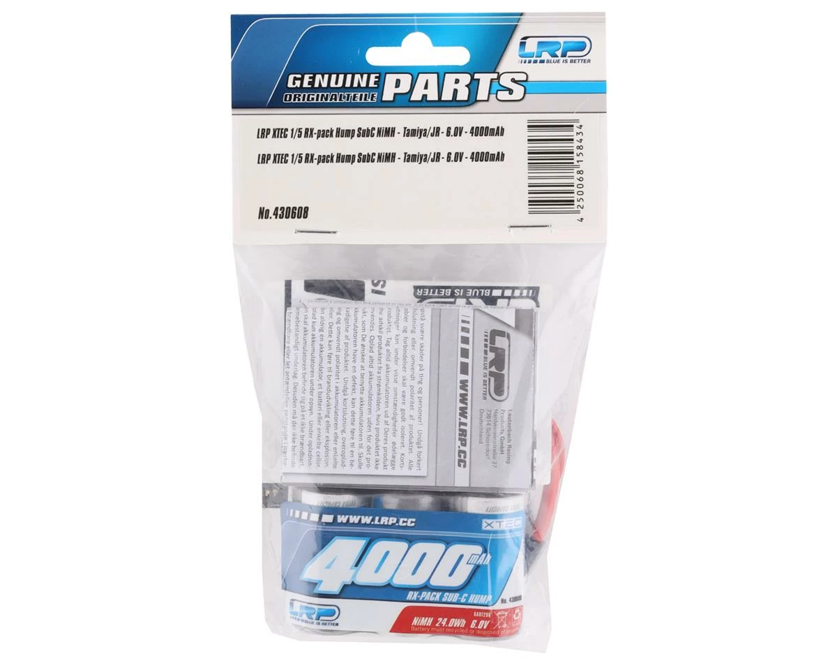 This is the LRP XTEC 5-Cell 6.0V “Long Life” 4000mAh NiMH Hump Receiver Pack, intended for use with 1/5 scale vehicles. With their high capacity and extra long runtime, these 4000 type cells are very robust and therefore have a very low self-discharge rate.