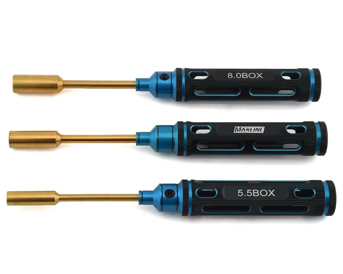 The Maxline Elite Nut Driver Set features 5.5, 7.0 and 8.0mm nut drivers with ergonomic handles and deep wall sockets to offer the best in comfort & fit while wrenching on your R/C cars.