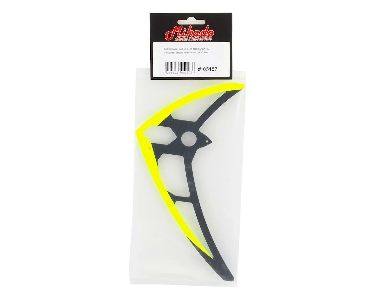 An optional Mikado Logo 700 Tail Fin, featuring a yellow painted accent.