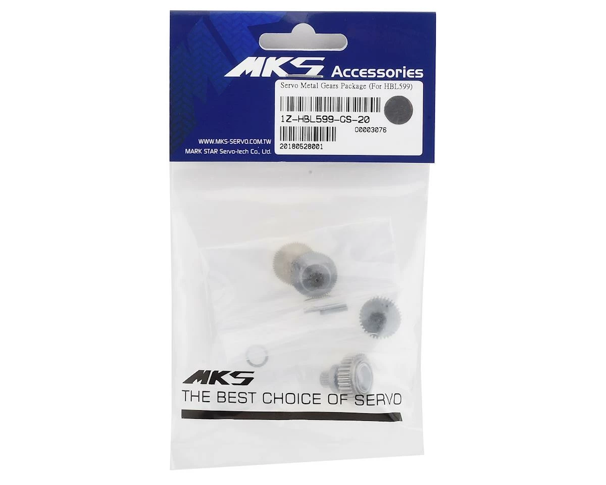 The MKS Metal Gear Set is a replacement set of gears for the MKS X6 HBL599 Brushless Titanium Gear High Torque and High Voltage Digital Servo. Package includes four gears and replacement hardware.