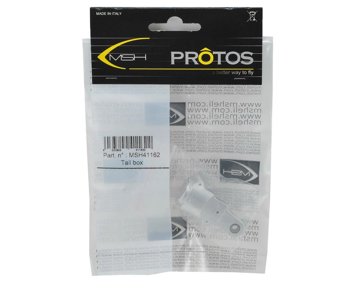 A replacement MSHeli Tail Box suited for use with the Protos 380 helicopter.
