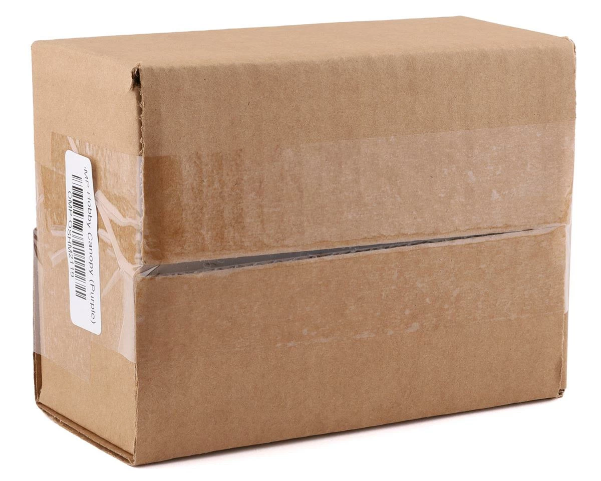 This is a replacement OMP Hobby M2 Plastic Canopy, in a pink, grey, and purple paint scheme.