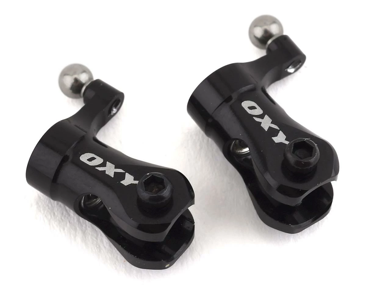An optional set of Oxy Heli CNC Aluminum Tail Blade Grips, suited for use with the Oxy 2 helicopter.