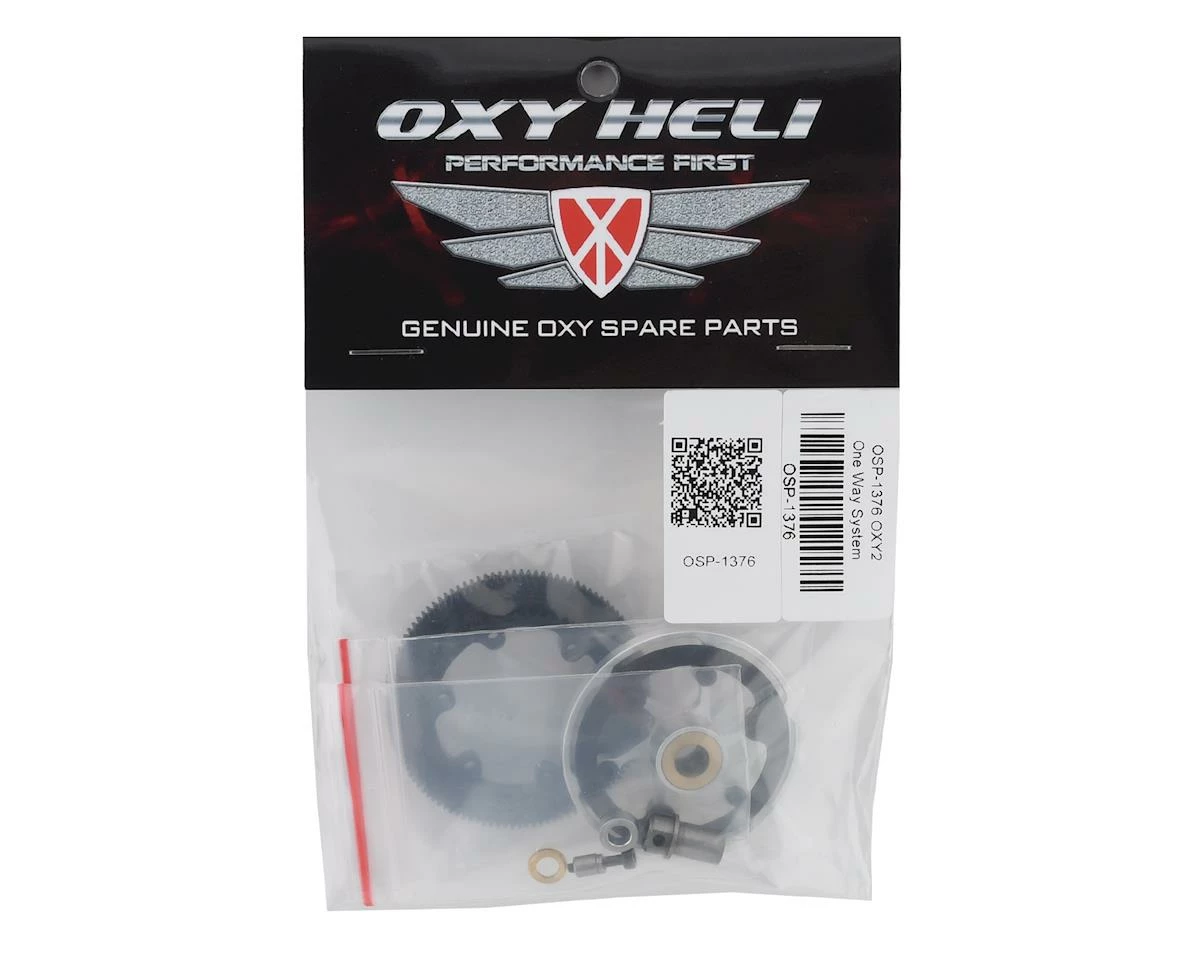 This is an optional upgraded Oxy Heli Main Gear System w/One Way Bearing for the Oxy 2 family of helicopters. Available in Straight or Slant main gears, this upgraded one way system will reduce drag and improve power output on your Oxy 2 heli!