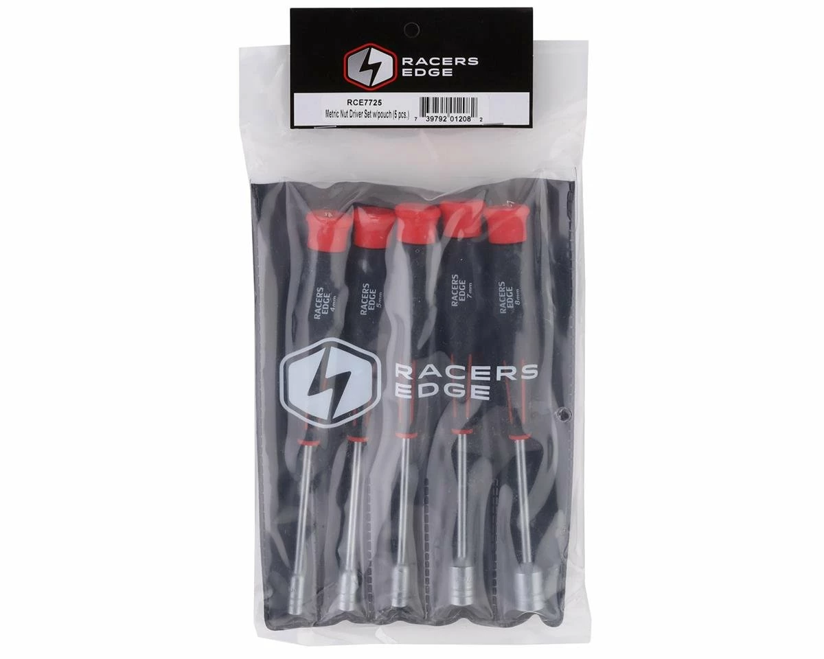 The Racers Edge Metric Nut Driver Set with Pouch is a great addition to any RC enthusiast tool collection. Featuring five nut drivers with comfortable handles, spinner top and made from a diecast alloy. Package includes one pouch and one each 4mm, 5.0mm 5.5mm, 7mm and 8mm nut driver.