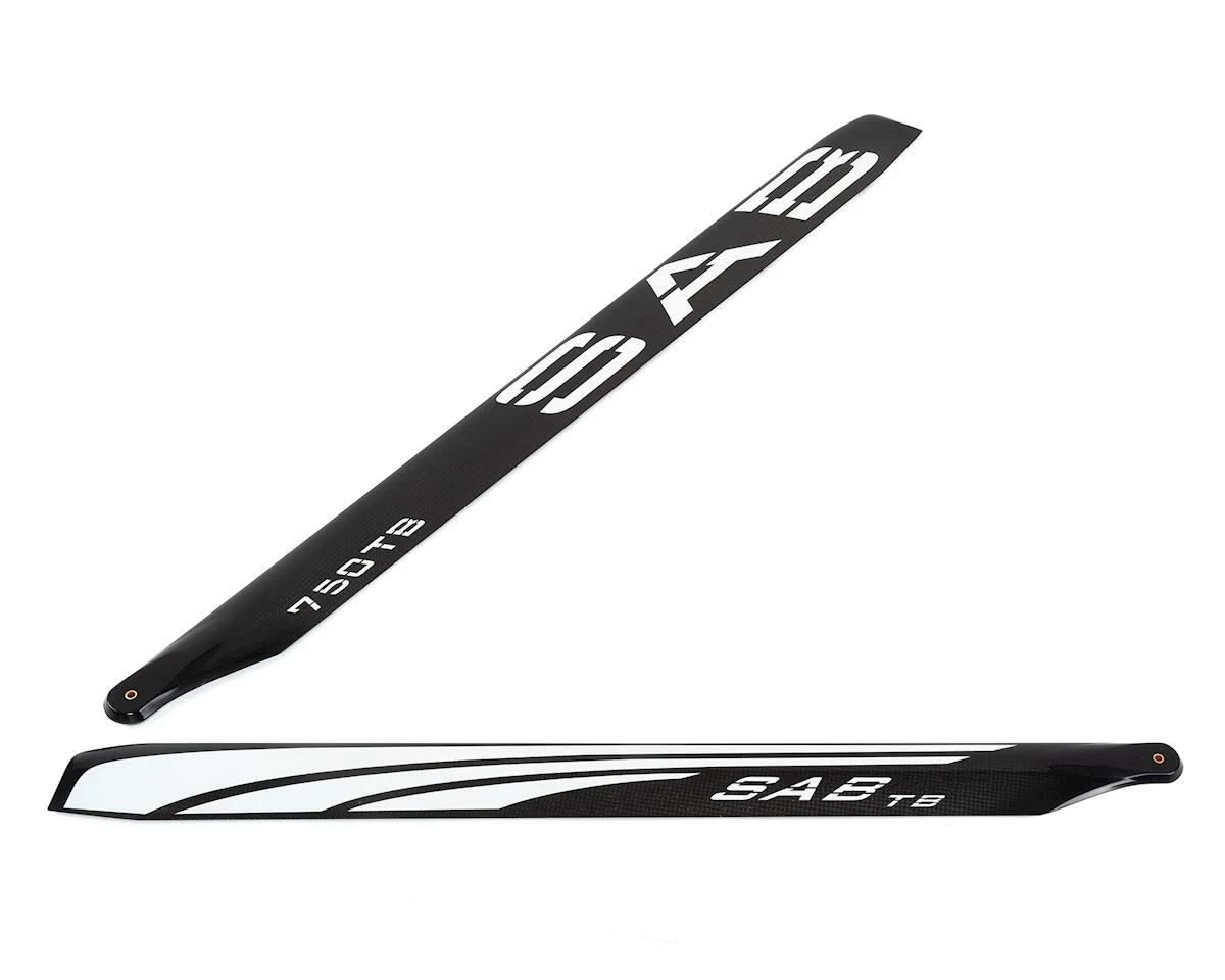 SAB 750mm Thunderbolt TBS Carbon Fiber Main Blades were developed to increase the performance of your Goblin 770 and other helicopters of the 750/770 class. The design was developed not only for an aesthetic improvement, but also to improve the visibility of the tip of the rotor to make the blades easier to see during low maneuvers. The variable profile along the radius of the rotor makes the “SAB Thunderbolt TBS Blades” 20% more efficient in comparison to the “SAB Black Line” blades, while improving stability to the machine without compromising the agility of the rotor.