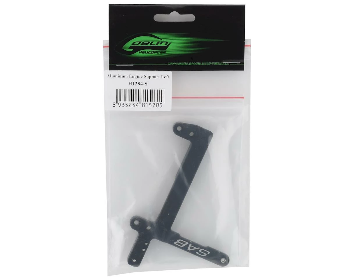 This is a replacement SAB Goblin Kraken 580 Nitro Aluminum Left Side Engine Mount, intended for use with the 580 Kraken Nitro Helicopter Kit.