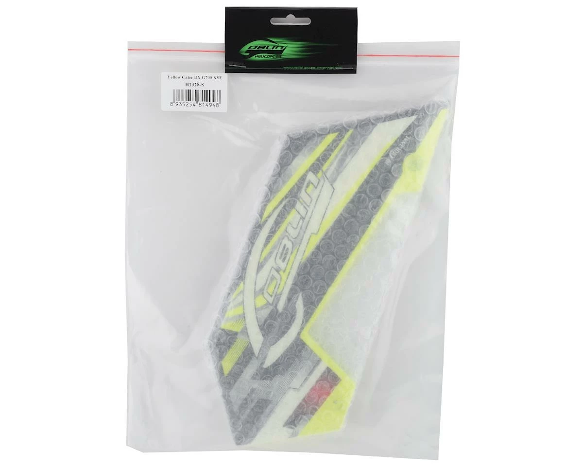 This is a SAB Low Right Side Frame Carter, suited for use with the Goblin Kraken 700 helicopter. Featuring a yellow and black livery.