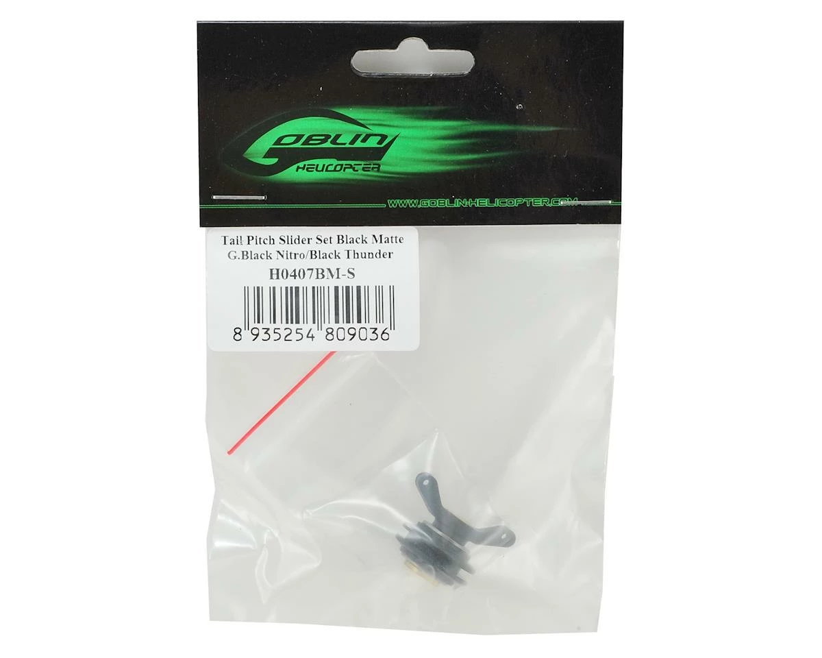 This is a replacement SAB Goblin Matte Black Tail Pitch Slider Set. This set comes assembled with installed bearings.