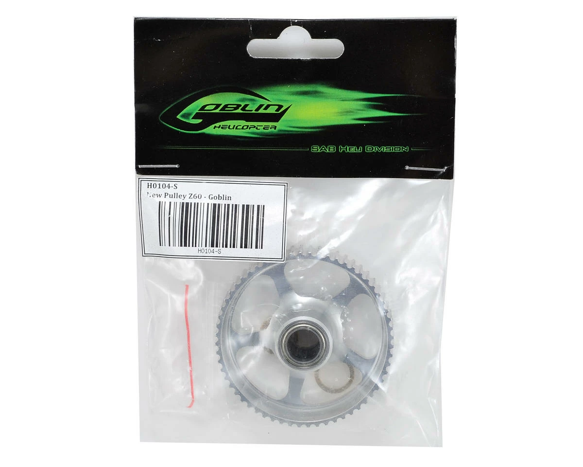 This is an optional SAB Triple Bearing 60 Tooth Pulley, and is intended for use with the SAB Goblin 630 and 700 electric helicopters. This 60T one way pulley is updated with dual-radial-bearing support for better auto rotation.