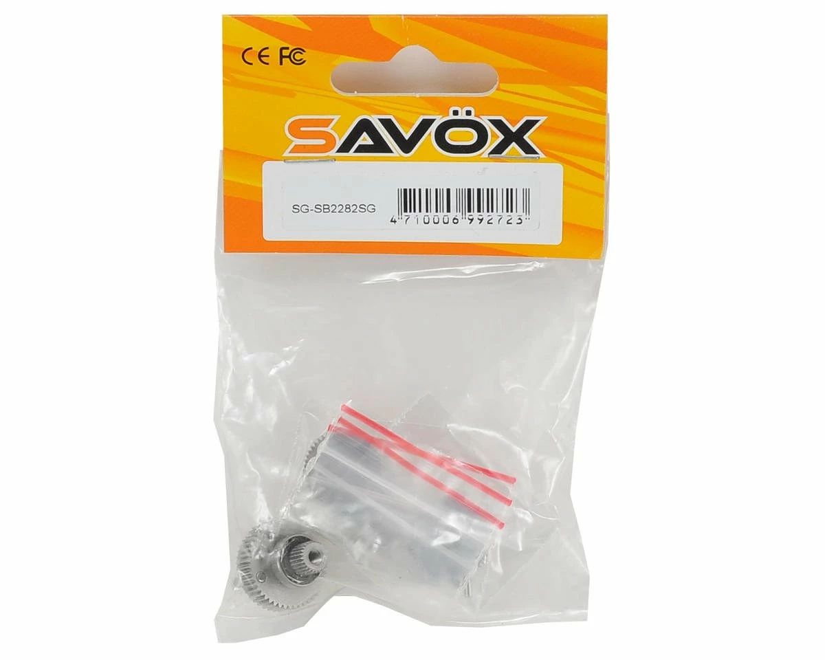 This is a replacement Savox SB2282SG Metal Gear Set. Package includes servo gears, main gear with factory installed bearing and pins.
