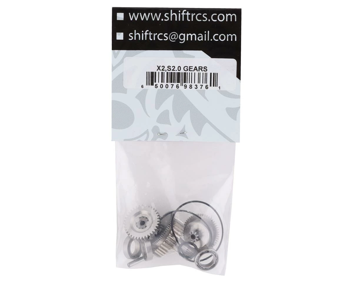 Shift RCs X2 & S2.0 Replacement Servo Gear Set. Package includes the gears, bearings, pins and o-rings needed to rebuild the gear train in the Shift X2 and S2.0 servos.Â