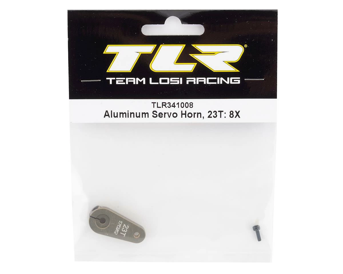 This is an optional Team Losi Racing 8IGHT-X Aluminum Servo Horn. This servo horn is compatible with servos that feature a 23 tooth spline; such as JR, Sanwa and KO.