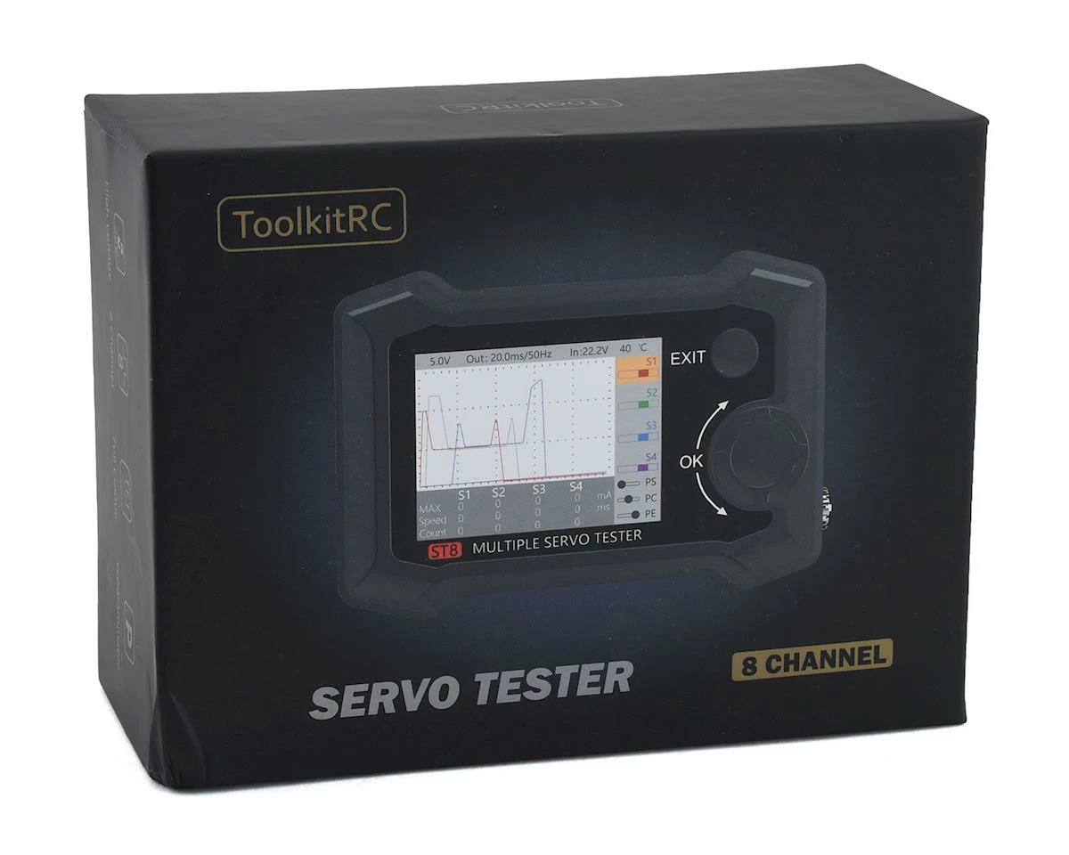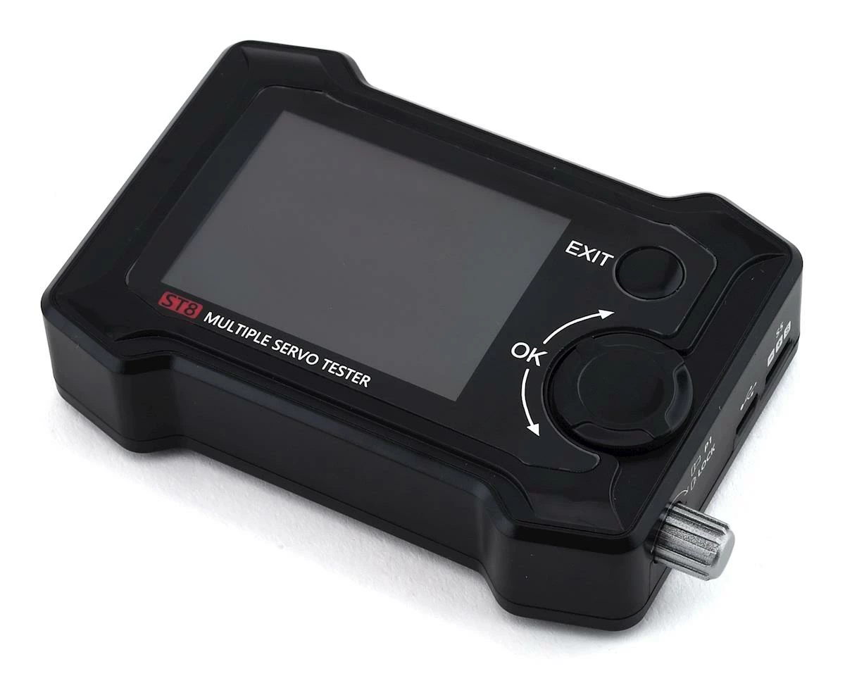 The ST8 Advanced Multi-Servo Tester is an incredible leap forward with a tool that is a must have for almost any R/C enthusiast. With the ability to adjust up to 4 servos at once (@ independent signal), 8 total servo outputs (@ a single signal), various measurement modes, various signal trigger sources, servo speed testing, and external signal input from PWM, PPM, or S.Bus signal, the ST8 will provide powerful tools to anyone looking for a great multi-purpose tool.