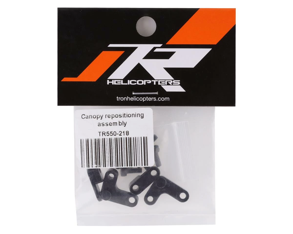 This is an optional Tron Helicopters Canopy Repositioning Assembly. This optional part is used to add extra forward clearance of roughly 15mm to the canopy when the Tron 5.5E is configured with a 12s battery system.