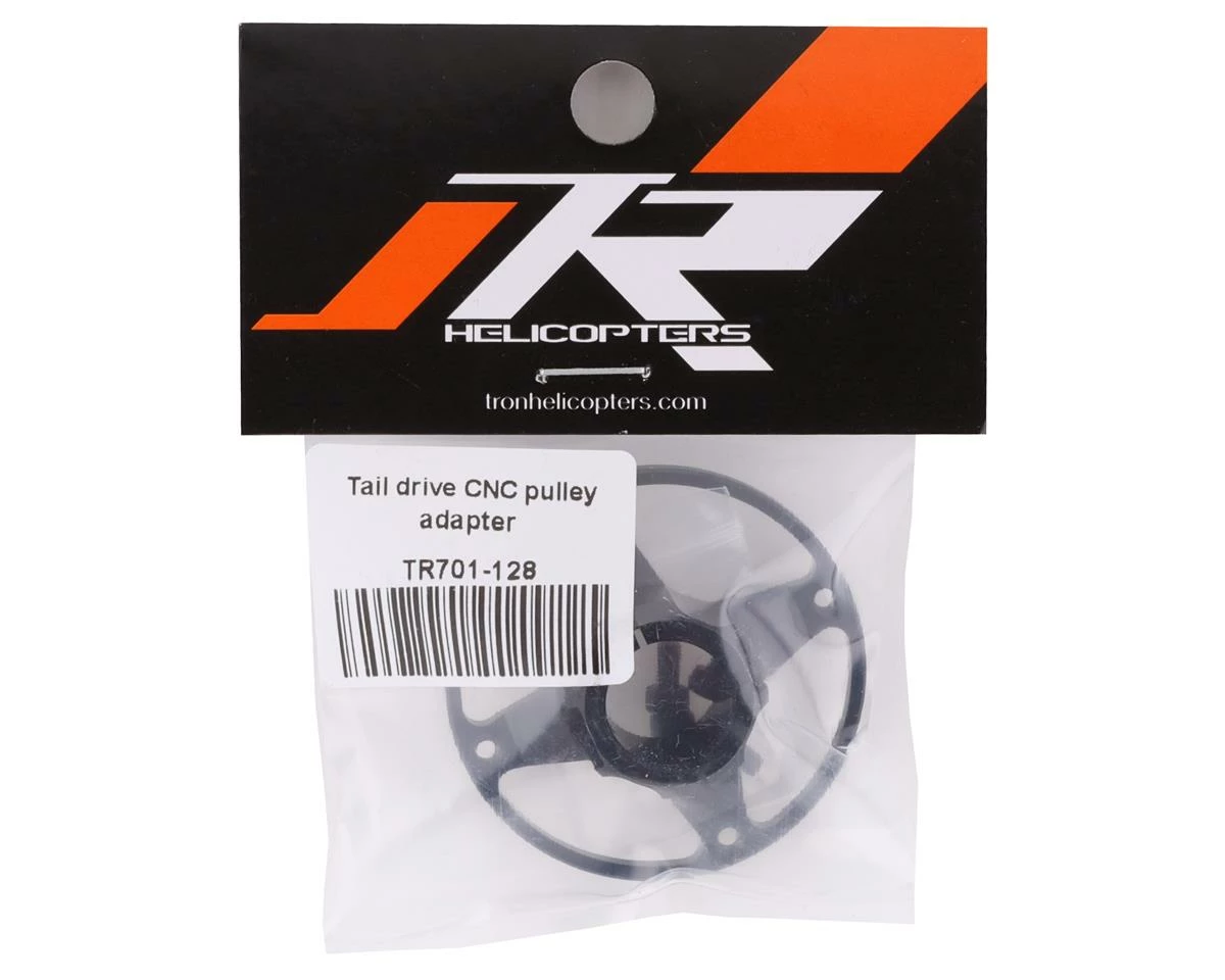 This is a replacement Tron Helicopters Tron 7.0 CNC Tail Drive Pulley Adapter, with mounting hardware.