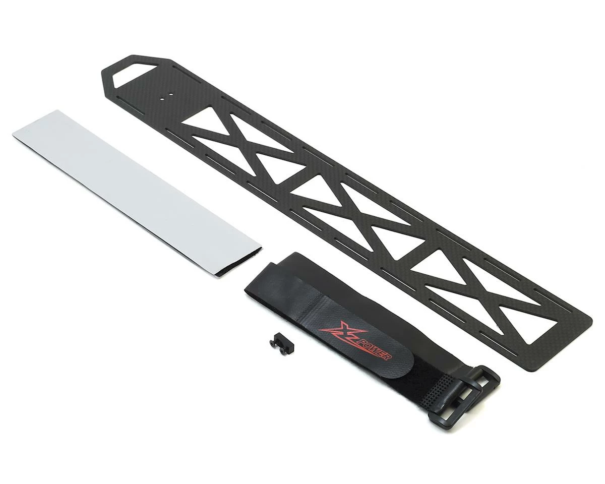 This is a replacement XLPower Battery Mounting Tray, and includes two Velcro Straps, & a Velcro patch. Suited for use with the Specter 700 helicopter.Â